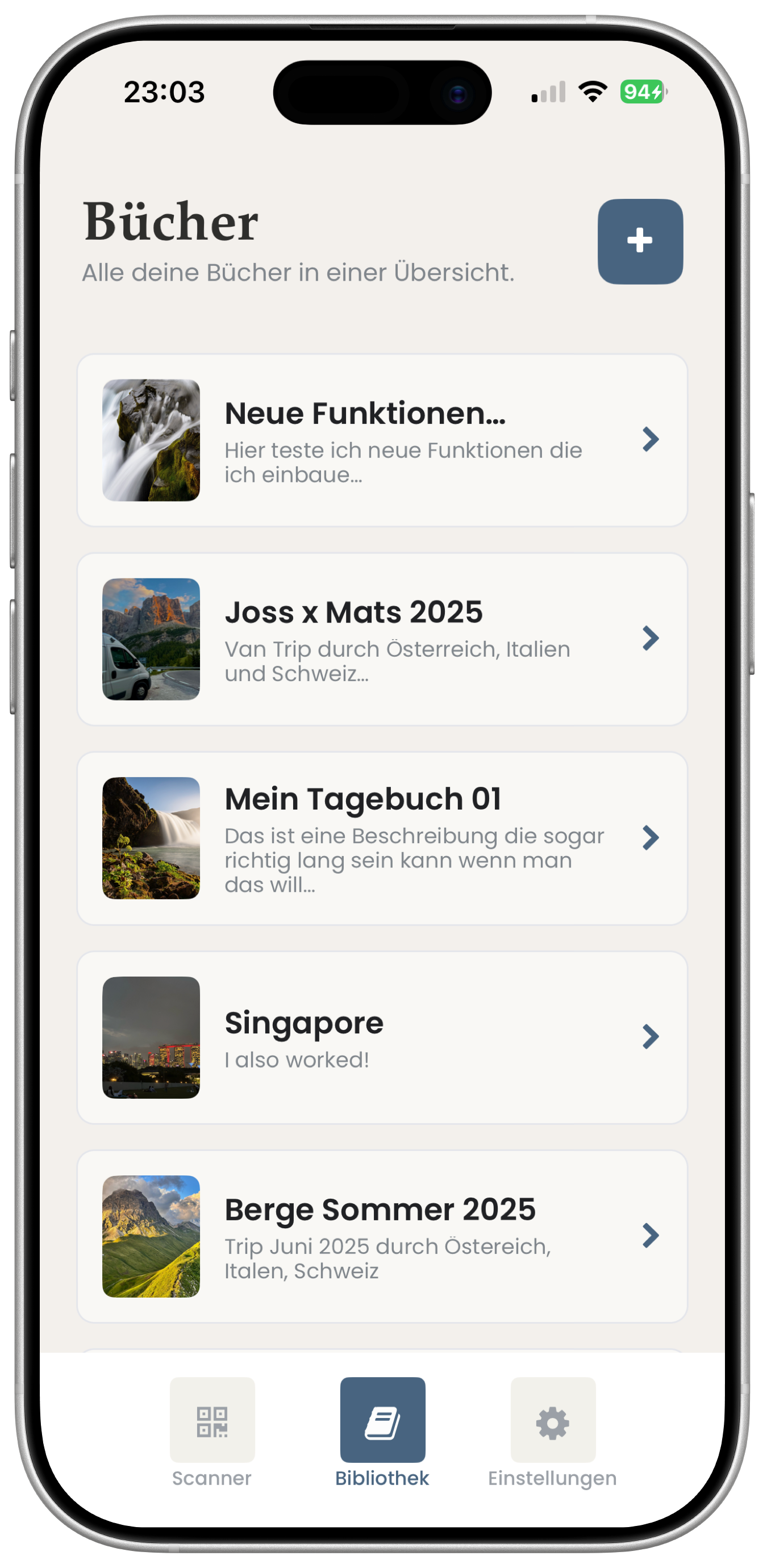 connect your written memories with pictures, videos and music. All in one App just by scanning the QR-Code